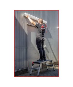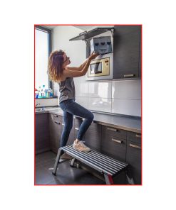 Με αντιολισθητικό προφίλ στην πλατφόρμα. Με προφίλ αυλακωτού ελάσματος στο σκαλοπάτι. Προστασία από ανατροπή σε περίπτωση λοξών πελμάτων στήριξης.